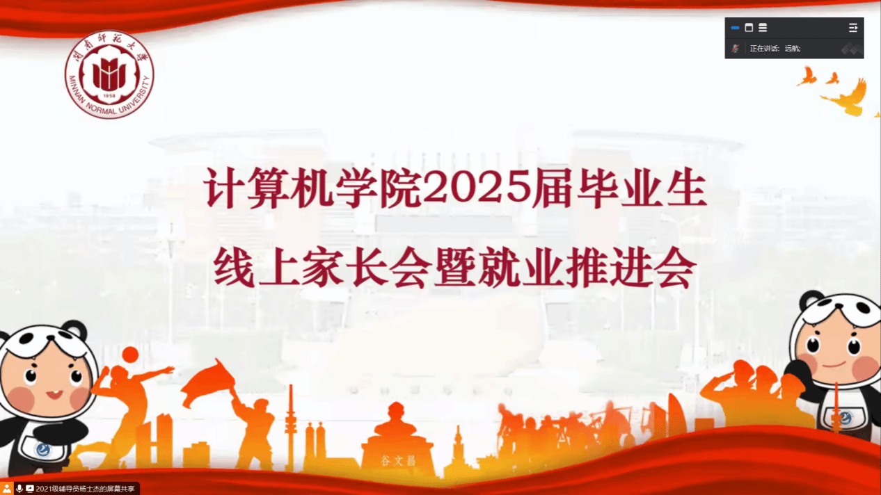 为强化家校协同,凝聚合力促进2025届毕业生高质量充分就业,1月17日下午,威尼斯官网在科技楼北1106会议室召开2025届毕业生线上家长会暨就业推进会。学院党委副书记陈小玲、网络工程系主任魏葆雅、计算机工程教研室主任郑艺峰出席本次会议。会议由辅导员杨士杰主持,全体2025届毕业生及家长线上参加会议。